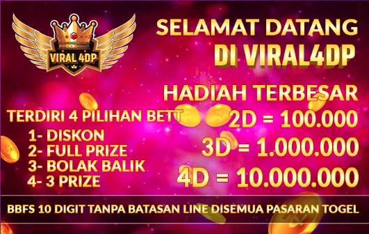 VIRAL 4DP adalah merupakan bandar yang viral dan terbesar sangat direkomendasikan untuk masa sekarang ini karena sudah termasuk menjadi salah satu agen bandar togel wla terpercaya dan paling populer di Indonesia. Situs ini berkomitmen penuh untuk membuat rasa nyaman sehingga menjadi bandar terpercaya hingga tidak perlu ragu untuk menjadikannya pilihan utama bermain togel online maupun slots online. Berapa saja kemenangan anda akan di bayar di sini, sebab VIRAL4DP bukan BO yang kaleng - kaleng tetapi salah satunya Bandar TOGEL dan SLOT yang memiliki sistem keamanan yang sudah teruji dari bandar VIRAL 4 DP yang dapat kita rasakan sendiri mekanisme keamanan yang telah mereka terapkan. Diantaranya ialah pengiriman invoice transaksi secara automatis lewat e-mail kepada para member. Jadi setiap transaksi yang dilakukan oleh pemain tidak akan bisa diedit lagi dan ini membuktikan tidak akan ada tujuan untuk melakukan penipuan kepada para pemainnya. Berikut adalah promo hadiah togel dan slot dari bandar VIRAL 4 DP.